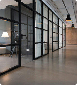 - Двери и перегородки: Применяются для зонирования пространства с эстетичной отделкой. Монтаж алюминиевых конструкций выполняется с учетом требований безопасности и эстетики.